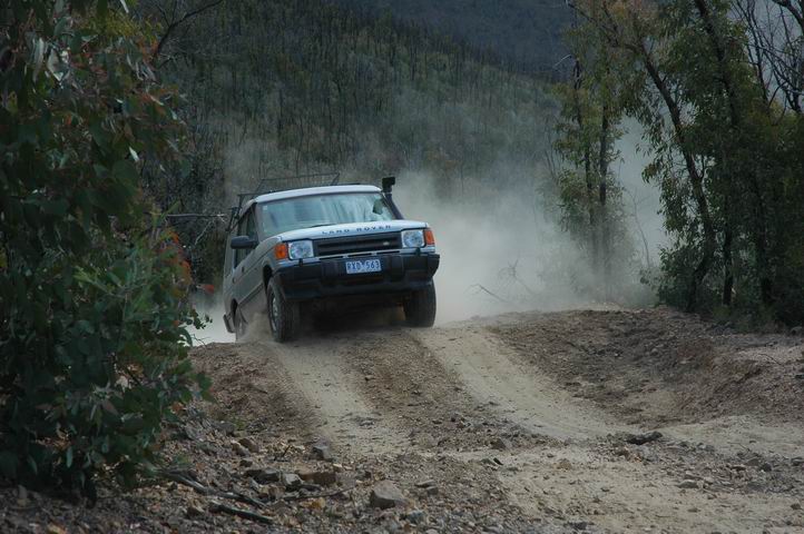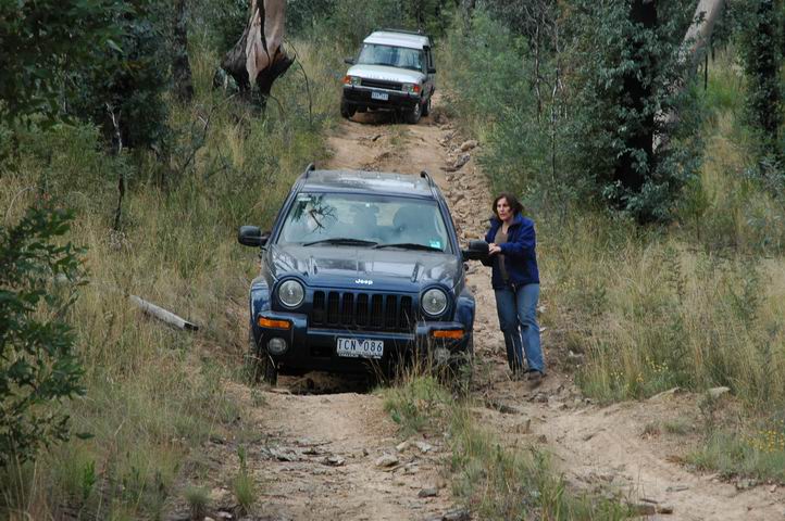 Martin completing a steep decent. Fiona is now ready to get back in the Jeep.