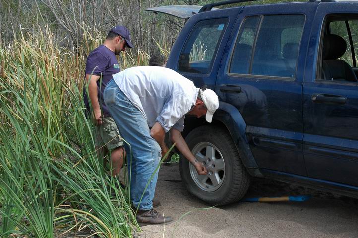 Martin gets a flat tyre. But we have our personal mechanic in the team :-)